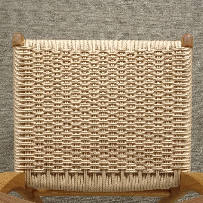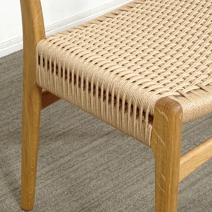ダブルで張られた美しいペーパーコード、そして、この椅子に安定性を与えている後脚のデザイン。