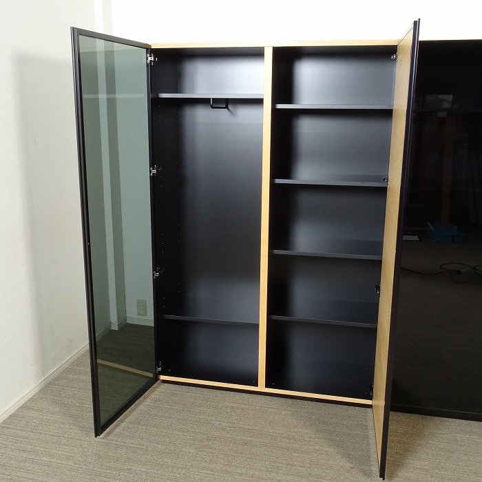 2ドア キャビネット (1枚ガラス・1枚木製):W.1200 D.450 H.1800 mm