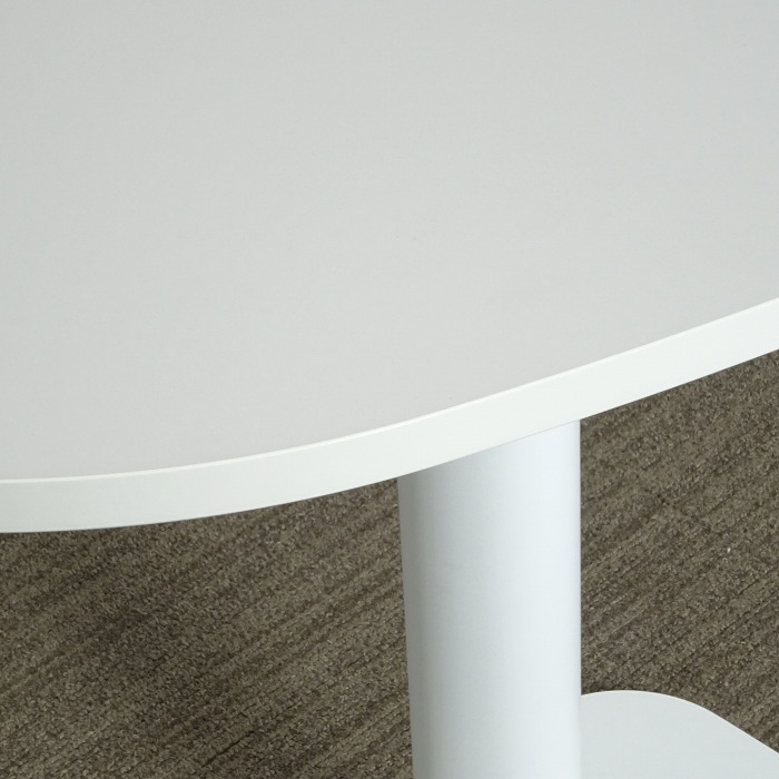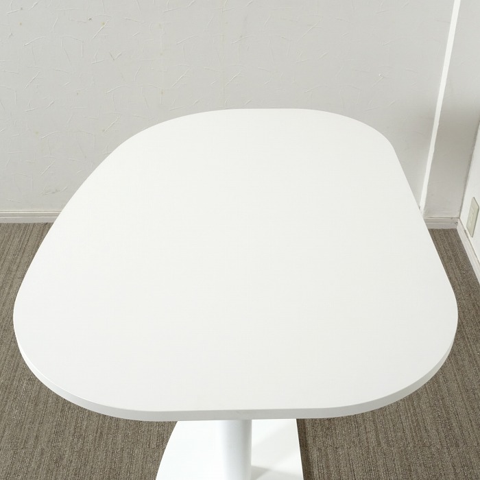 独創的な形の天板は片側がまっすぐなため、使用しない時には壁に押し付けることも可能です。