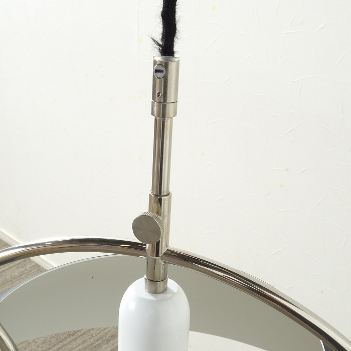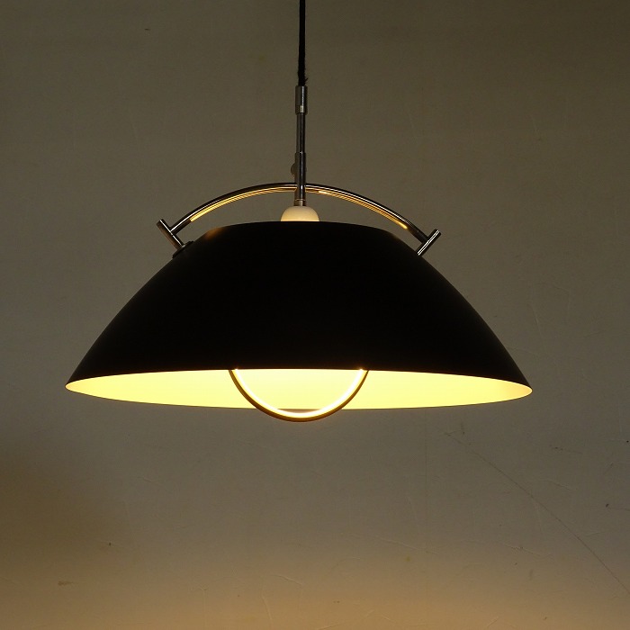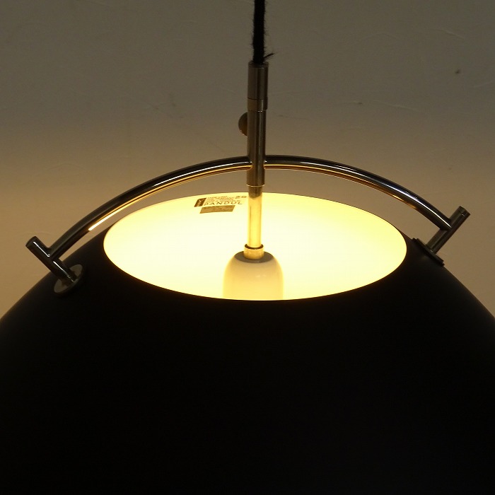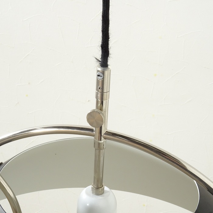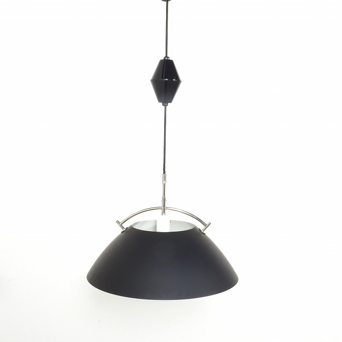 コードリーラーによりコードの長さが自在に変えられる機能、シェードの中の光源のレベルを変えることで光の拡がる範囲を調整出来たりと設計者のアイデアが凝縮されたペンダントランプです。