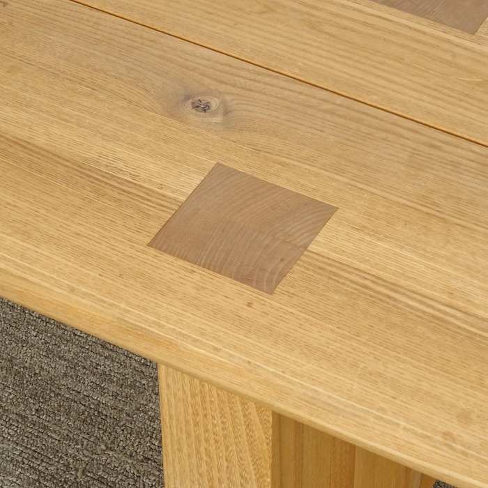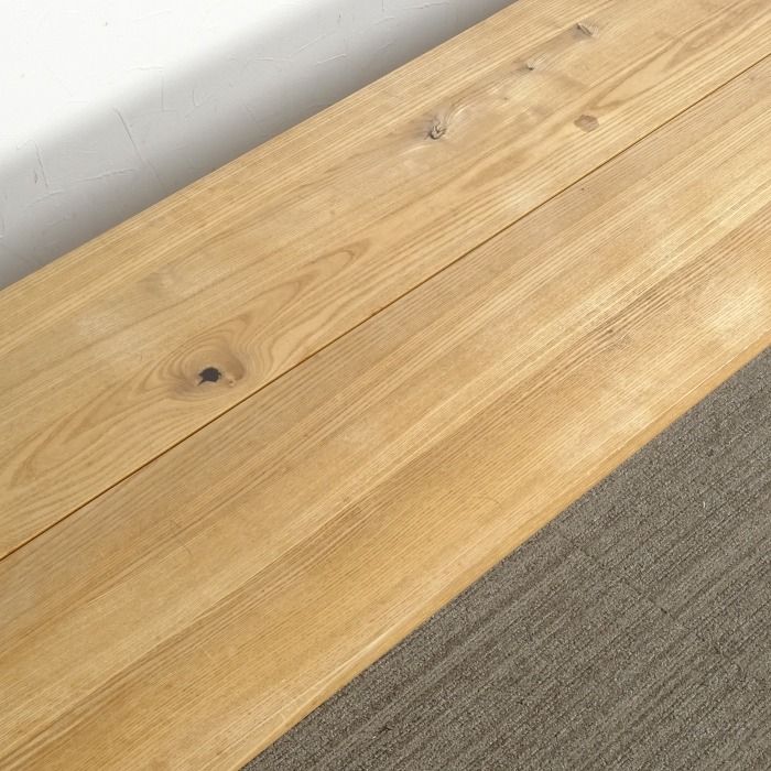天板も脚部も無垢材で仕上げられたベンチ。