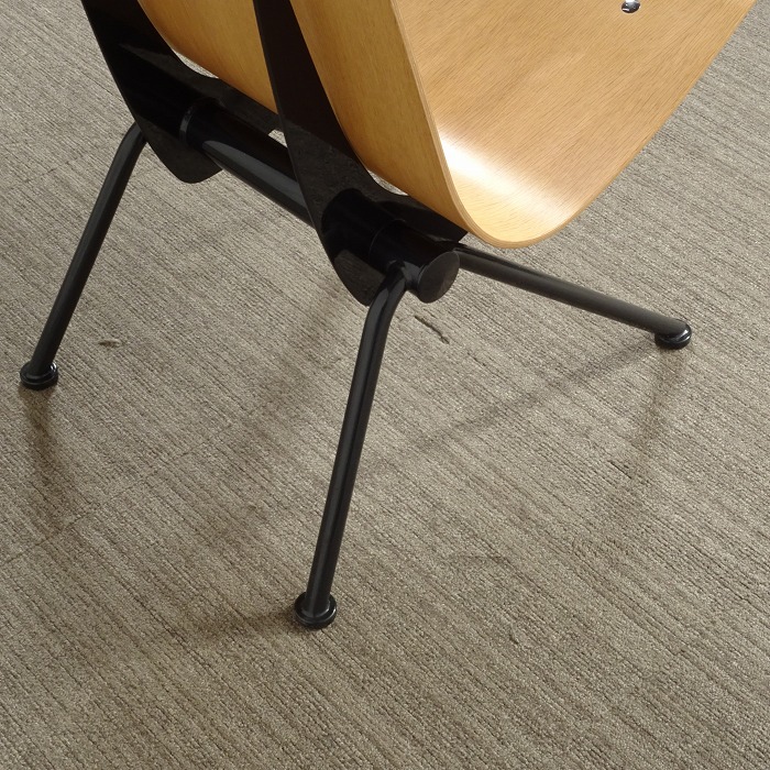 この成形合板の座面をL字型になったスチールで両サイドを浮かせるように支えていることで弾力性を生み出しこの快適な座り心地を生み出しています。